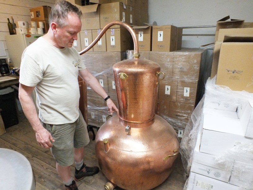 Since he’s not mass producing brandy at this time, he decided he could manage in the short term with a smaller-size still that requires more manual operation.